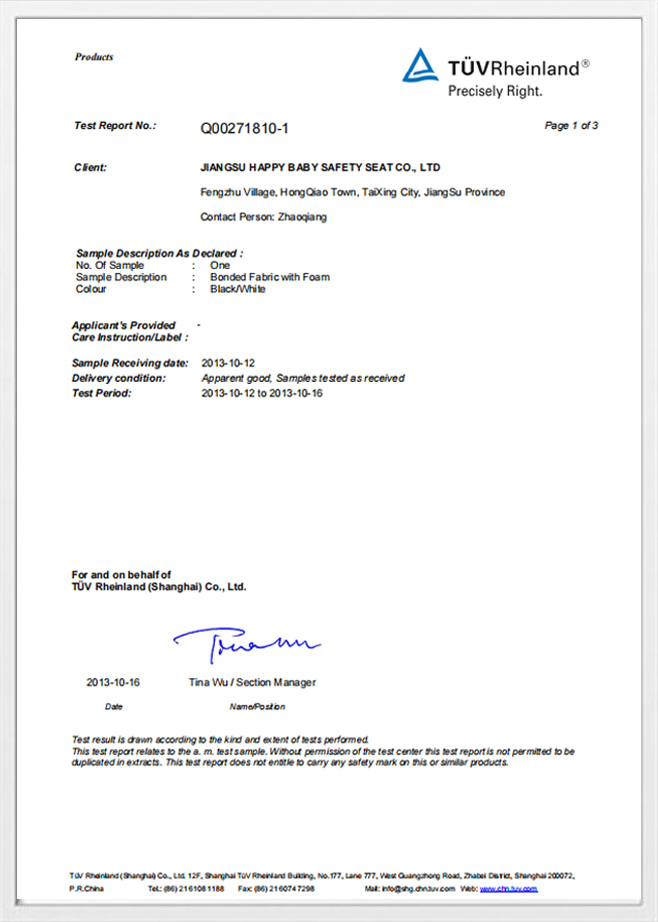 JIANGSU HAPPY BABY SAFETY SEAT CO., LTD.